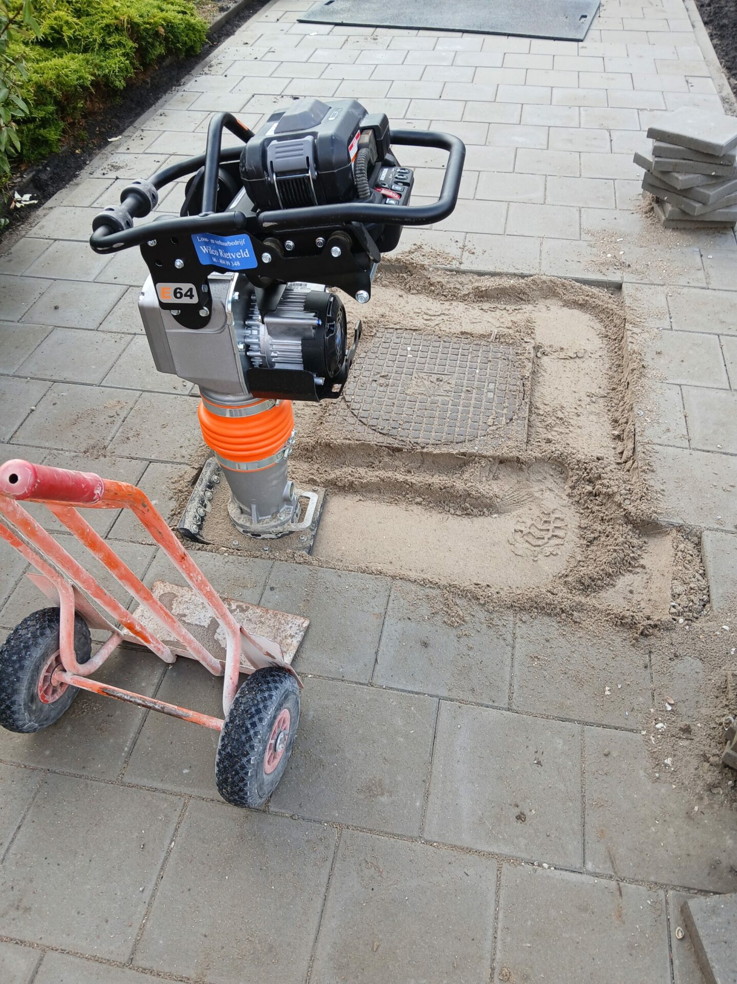 een slagkracht van 1,9 ton en een plaat van 50 cm breed. Deze trilplaat wordt volledig zonder benzine aangedreven en maakt gebruik accu’s. Tevens beschikken wij over een Samac stamper. De s64E maakt gebruik van dezelfde accu’s als de trilplaat, dit zijn in totaal 4 accu’s en 2 snelladers.